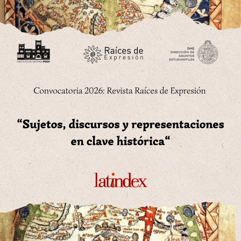La revista estudiantil Raíces de Expresión realiza una convocatoria abierta a los estudiantes de la Pontificia Universidad Católica de Valparaíso para que puedan diseñar la portada de la vigésima primera edición de la revista. Buscamos expresiones fotográficas, ilustraciones o cualquier forma visual que exprese el título “Sujetos, discursos y representaciones en clave histórica”.